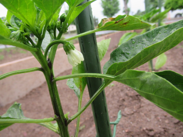 トマト、ズッキーニに続き、ピーマンにも花が咲きました♪