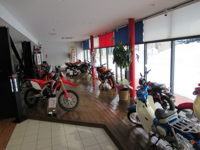 店頭の除雪機が減ってきたので、バイクを並べてみました!